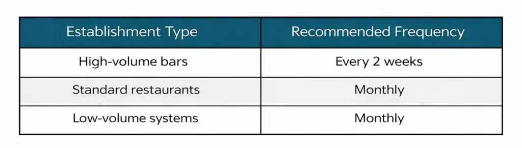Most systems require cleaning every two weeks or monthly, depending on usage volume.