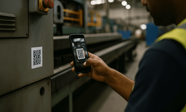 Each serviced system is labeled with a unique QR code tag that provides instant access to service records and maintenance history. By scanning the code, operators and inspectors can quickly verify when the system was last serviced and review documented work performed.